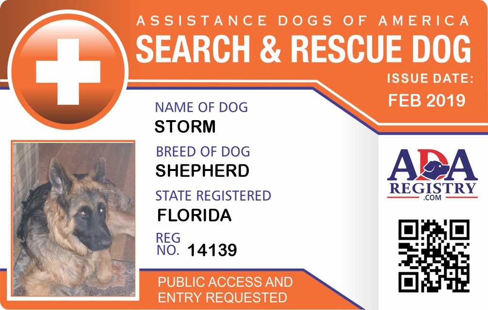 Search And Rescue Dog Registration for Storm