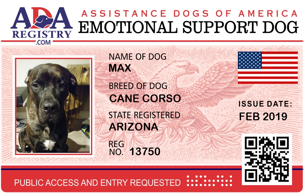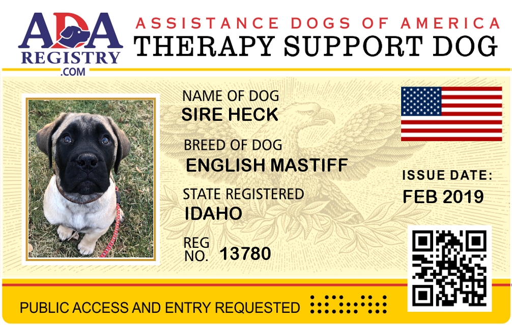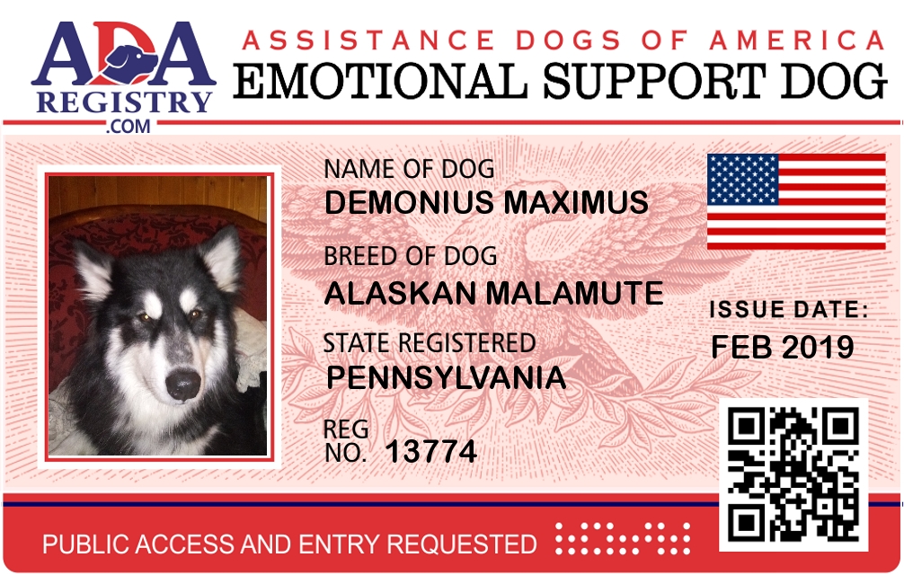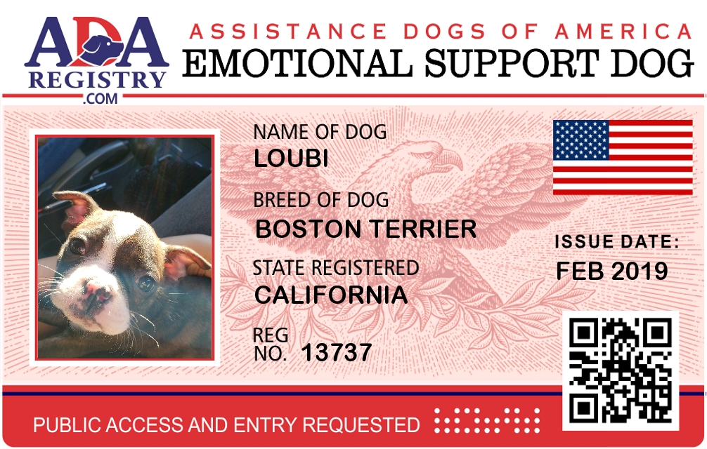 Emotional Support Dog Registration for Sasha Fierce Abron