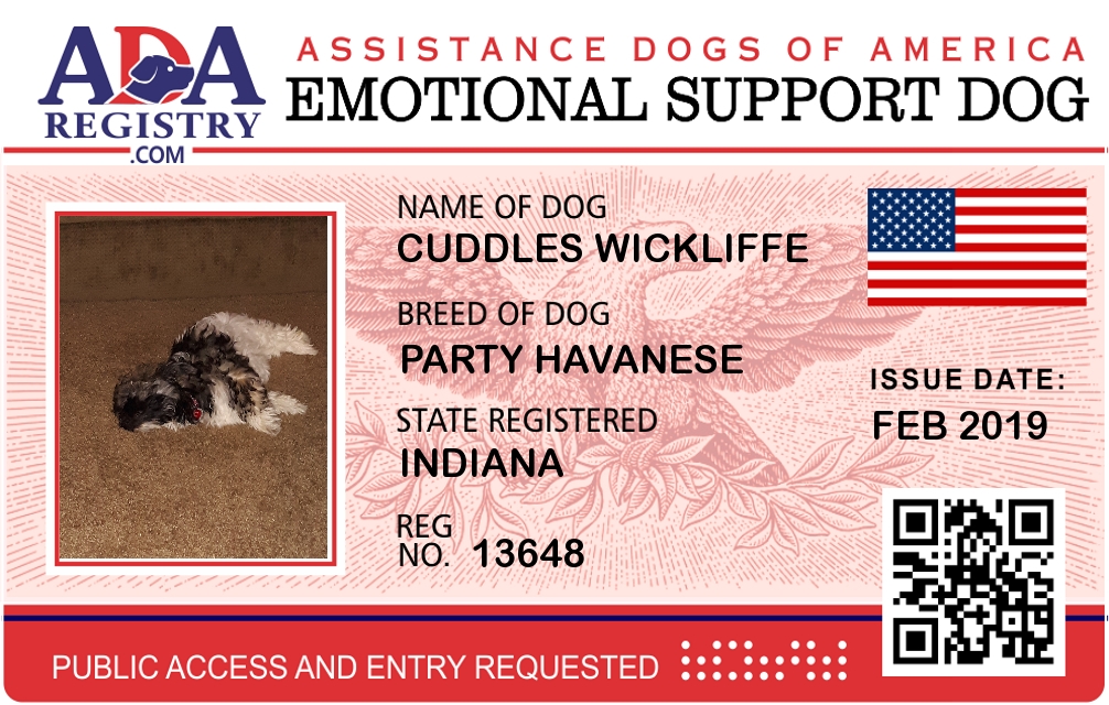Emotional Support Dog Registration for Cuddles Wickliffe
