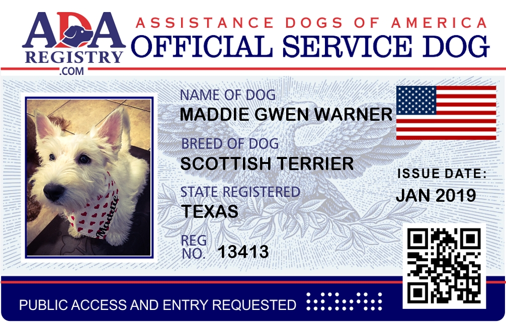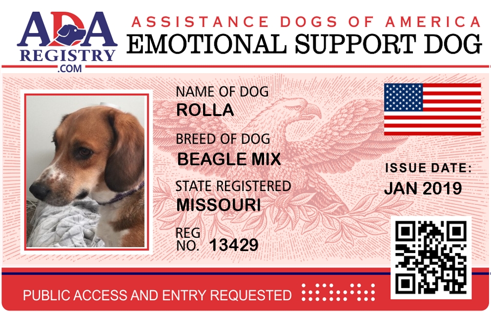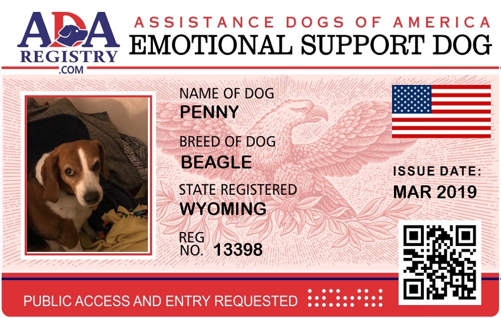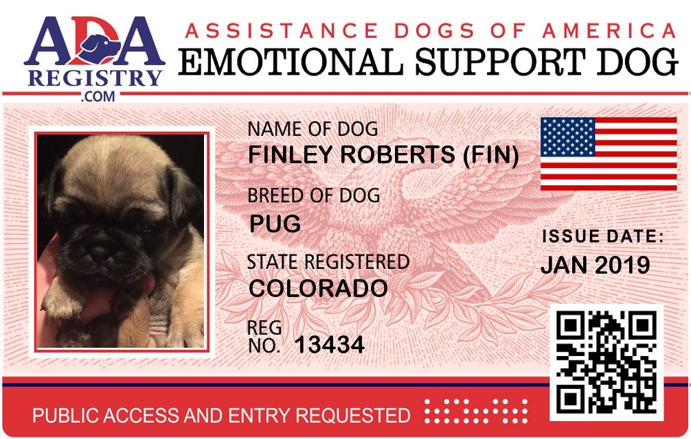 Emotional Support Dog Registration for Finley Roberts (Fin)