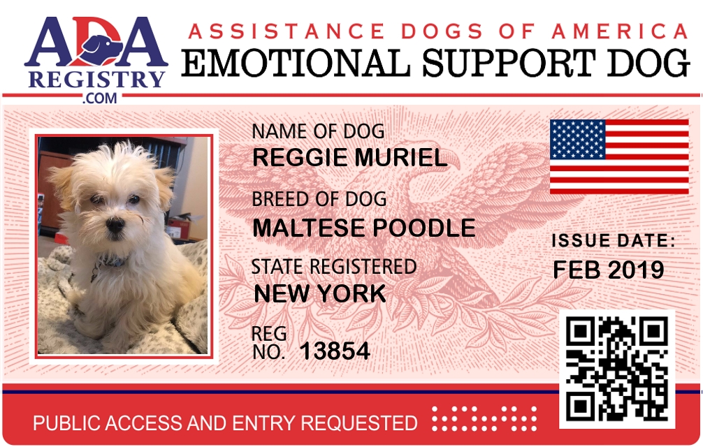 Emotional Support Dog Registration for Reggie Muriel