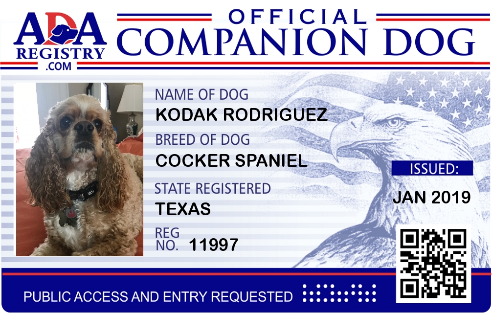 Companion Dog Registration for Kodak Rodriguez