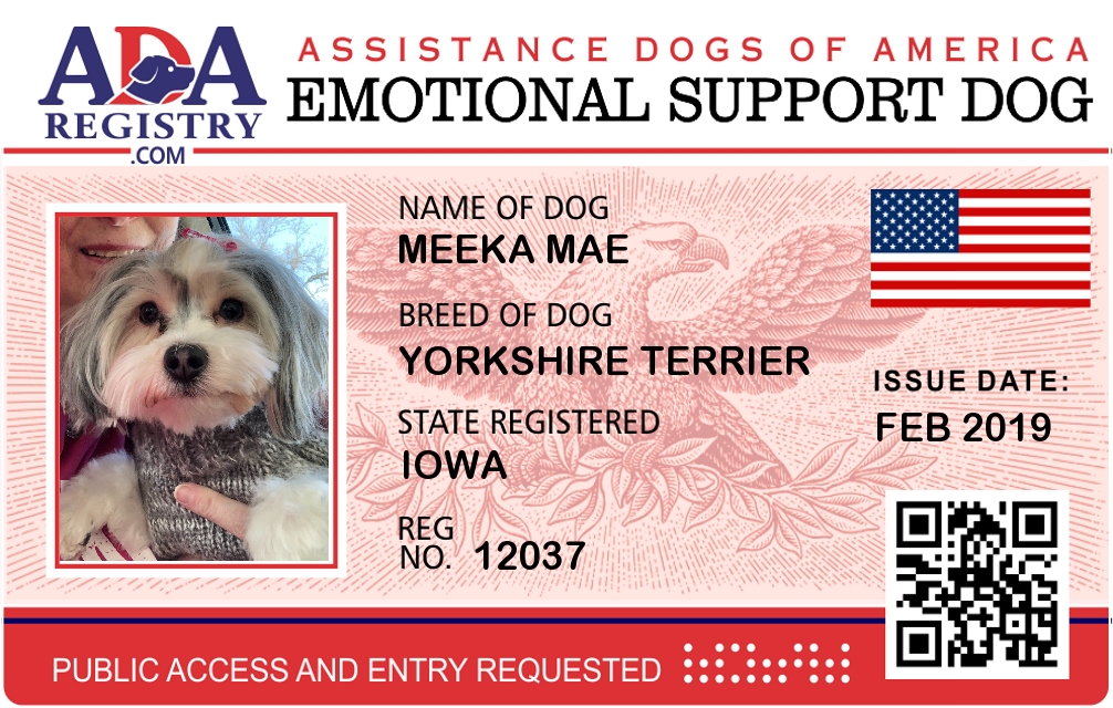Emotional Support Dog Registration for Meeka Mae
