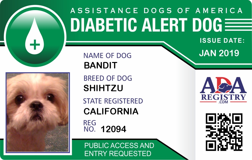 Diabetic Alert Dog Registration for Bandit