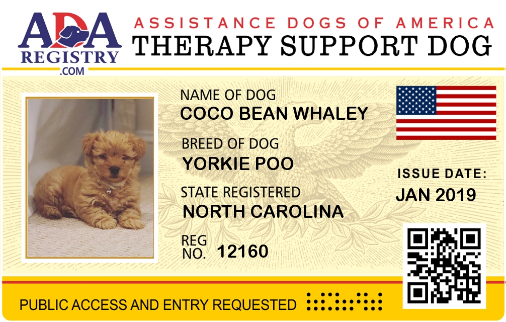 Therapy Dog Registration for CoCo Bean Whaley