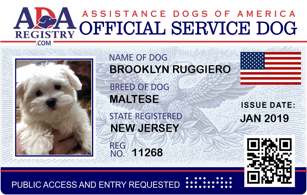 Emotional Support Dog Registration for Brooklyn Ruggiero