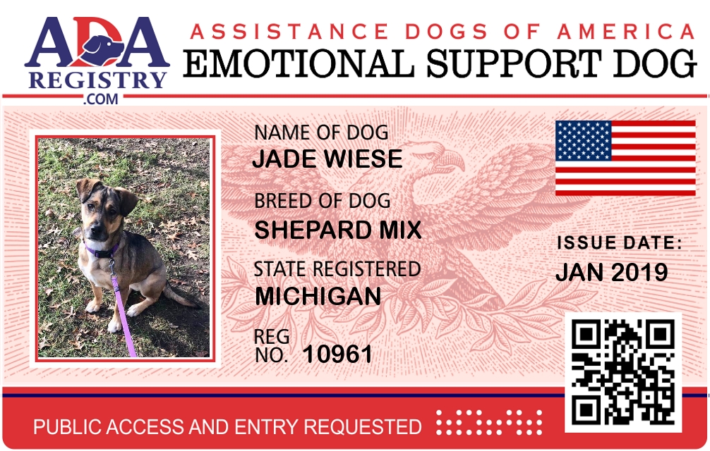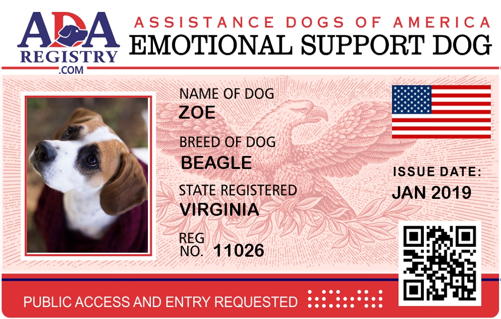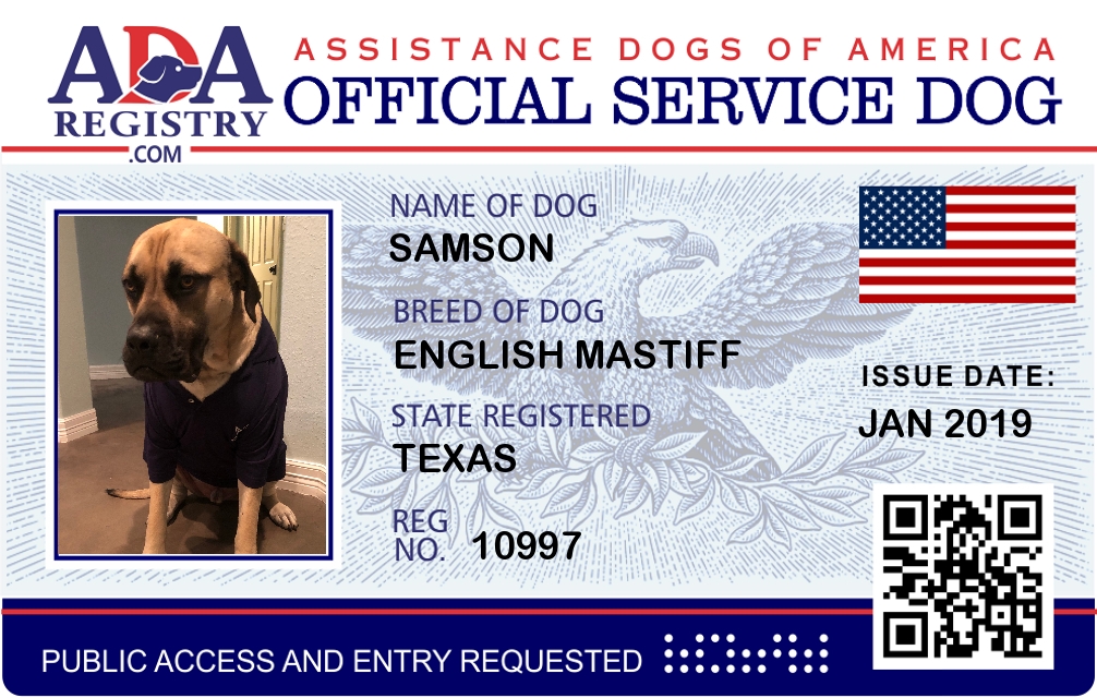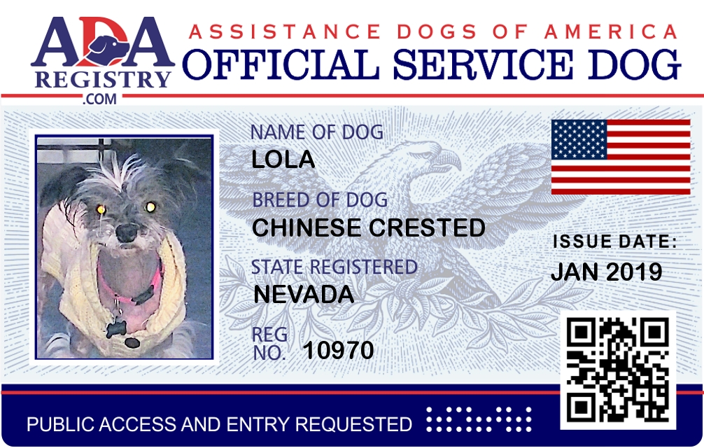 PTSD Assistance Dog Registration for Bella Carrasquillo