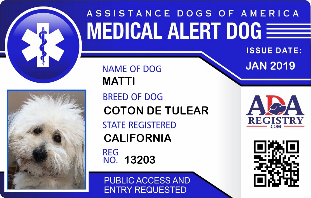 Medical Alert Dog Registration for Matti
