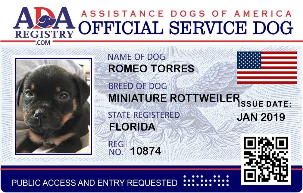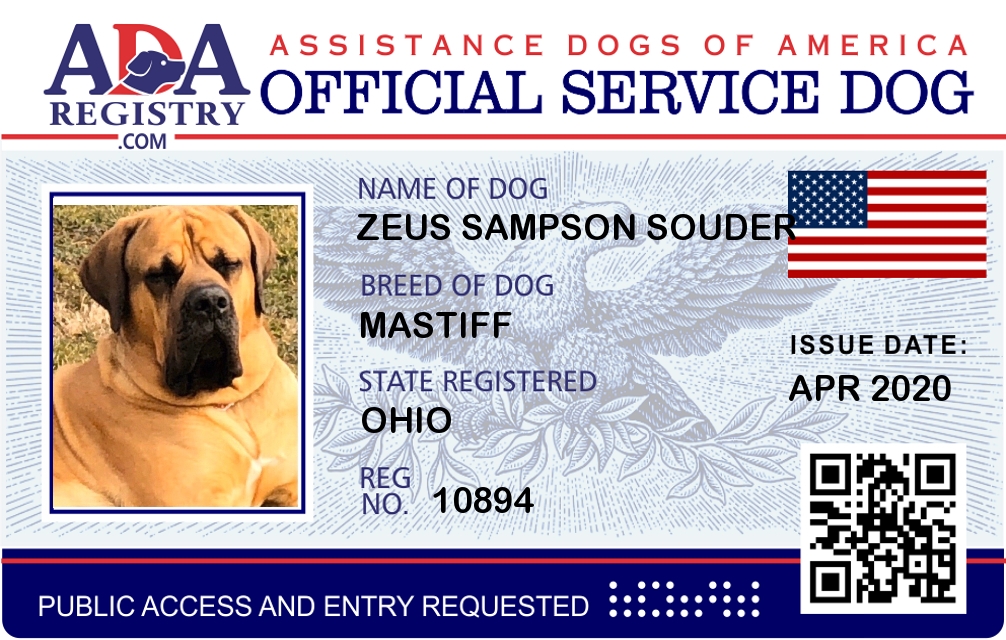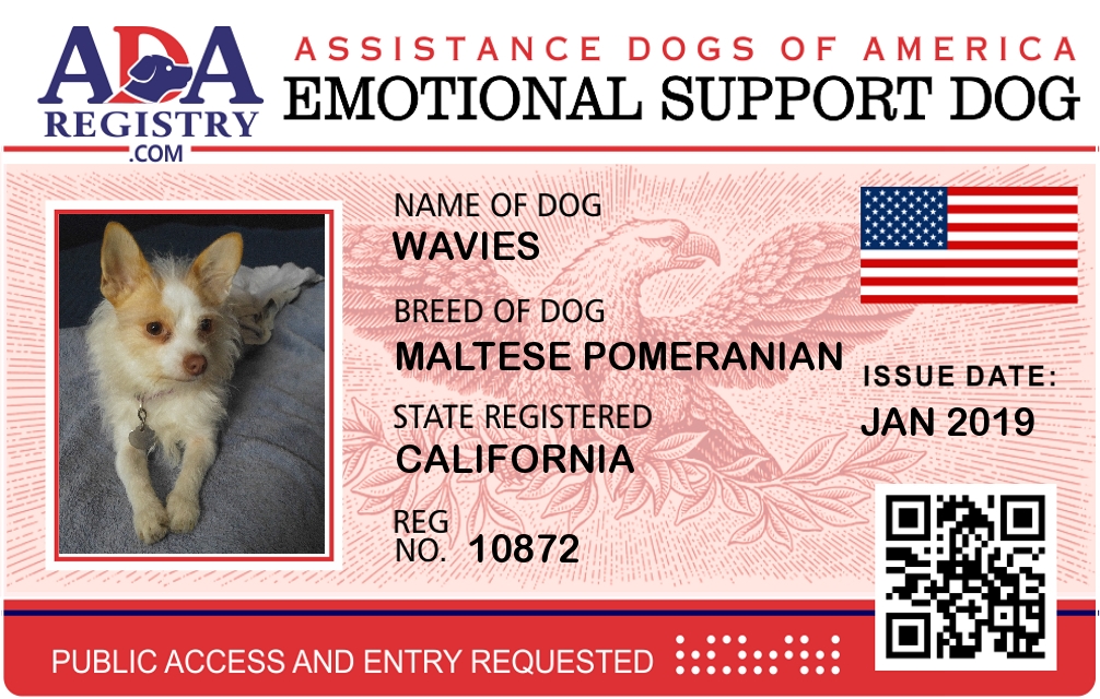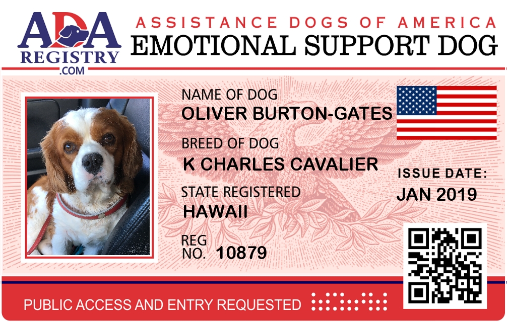 Emotional Support Dog Registration for Oliver Burton-Gates
