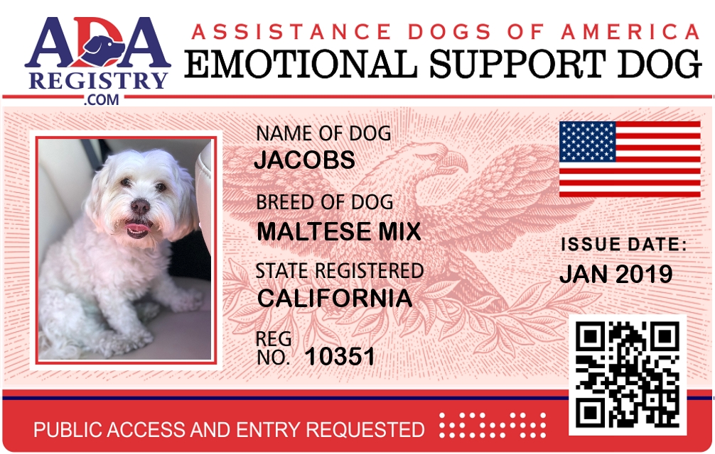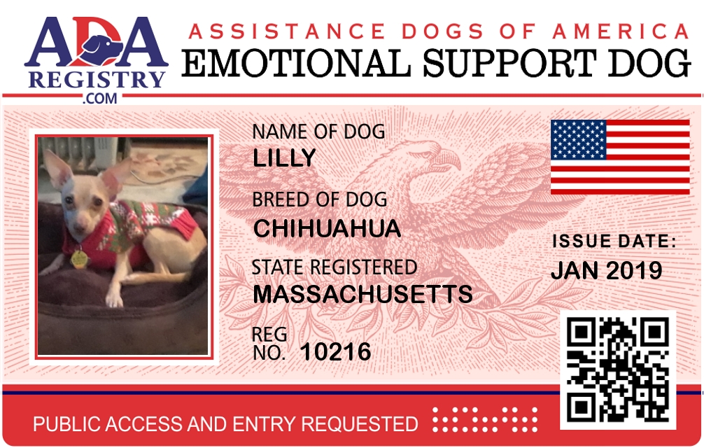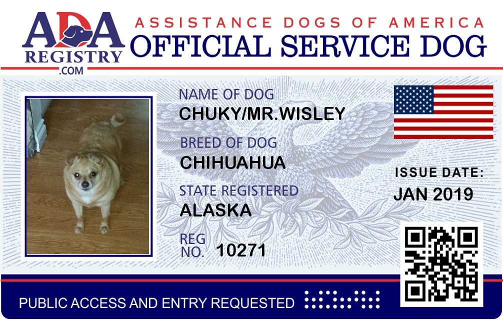 Emotional Support Dog Registration for CHUKY/MR.WISLEY