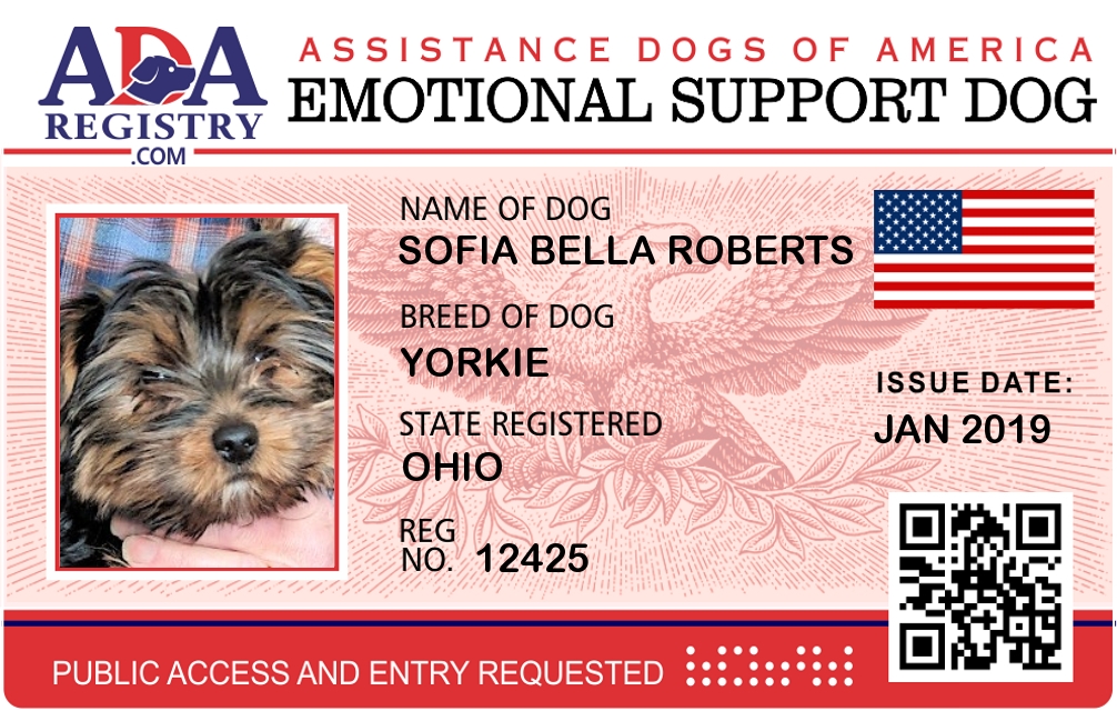 Emotional Support Dog Registration for Sofia Bella Roberts