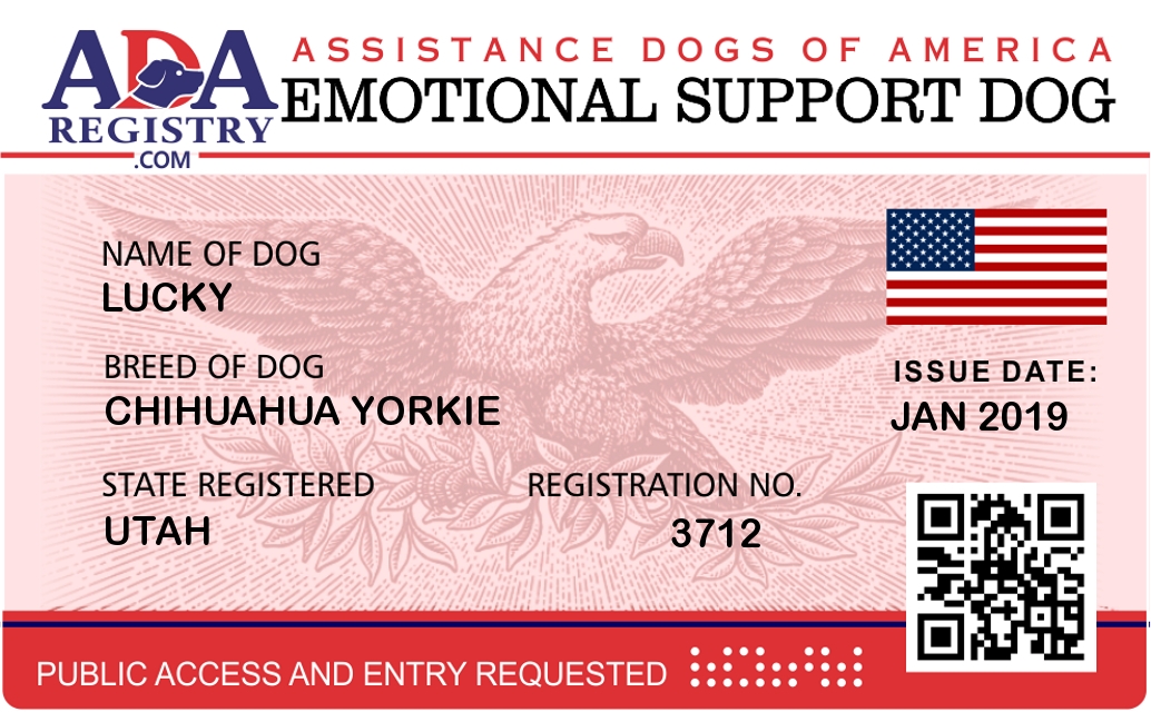 Emotional Support Dog Registration for Fig "Tank" Moody