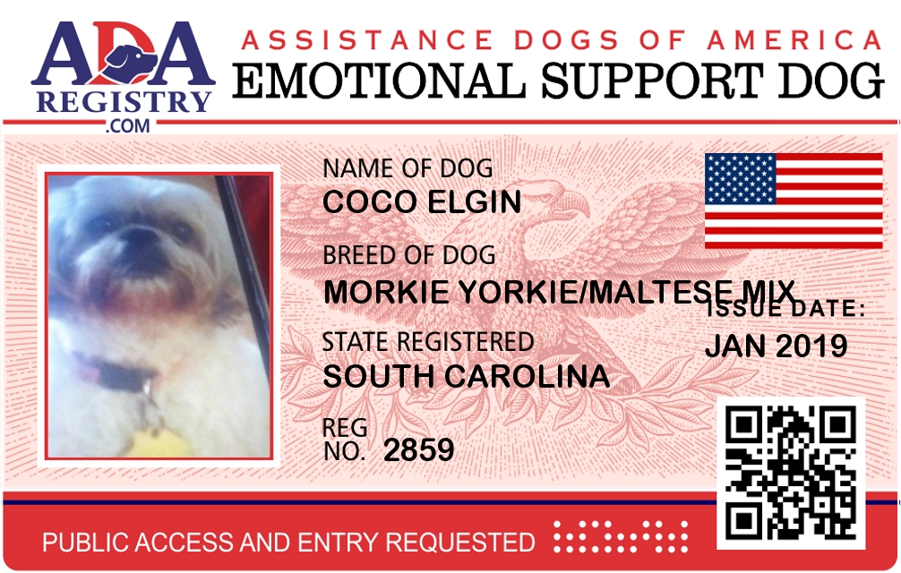 Emotional Support Dog Registration for Coco Elgin
