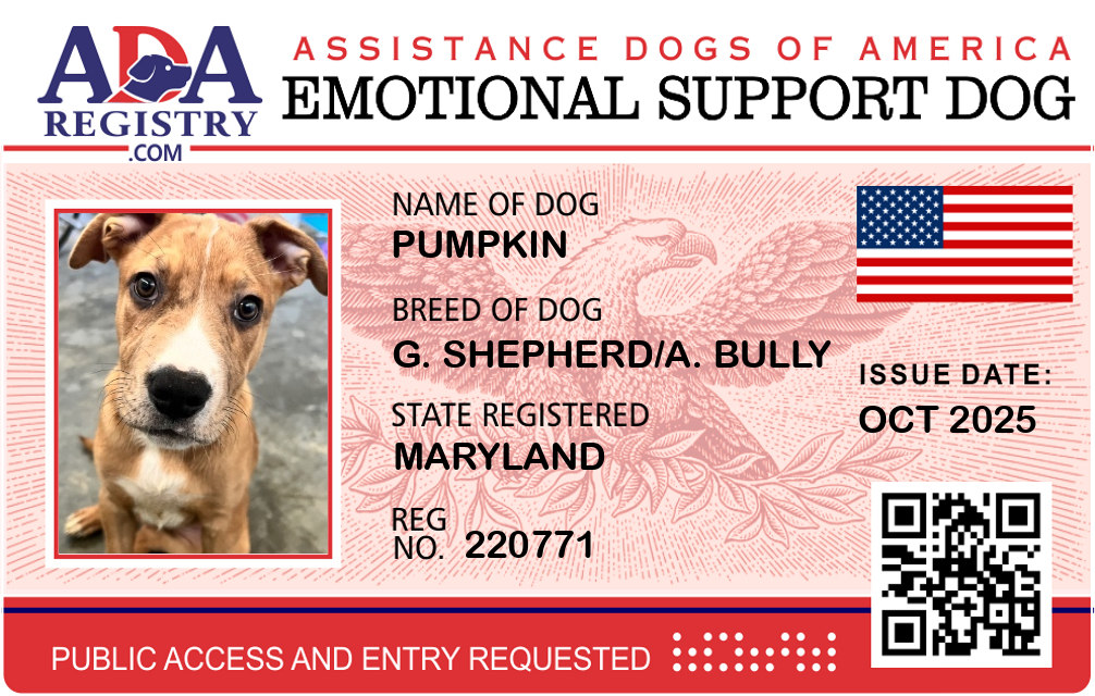 Emotional Support Dog Registration for Pumpkin
