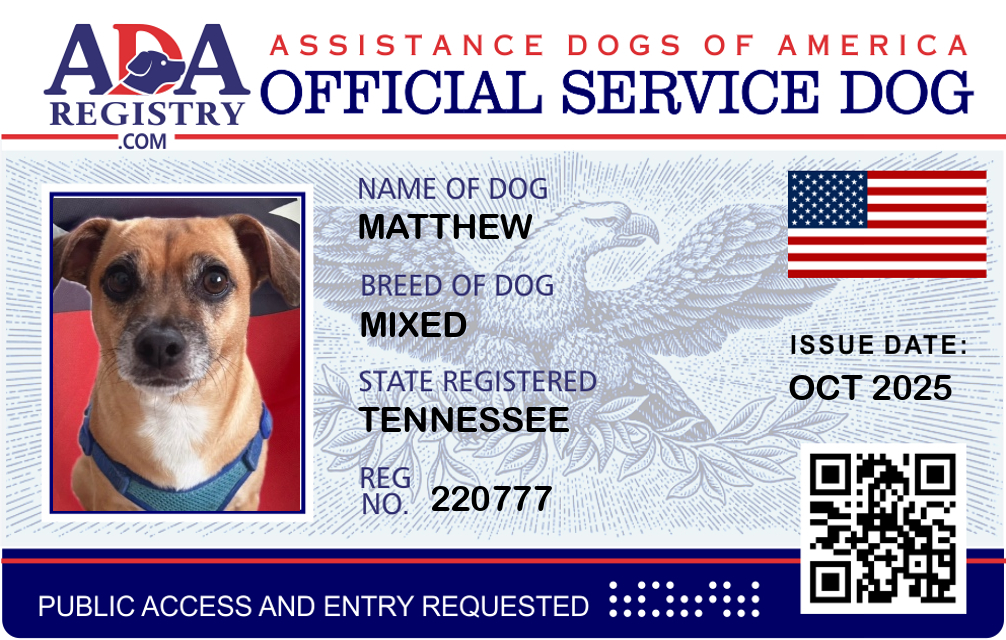 Service Dog Registration for Matthew