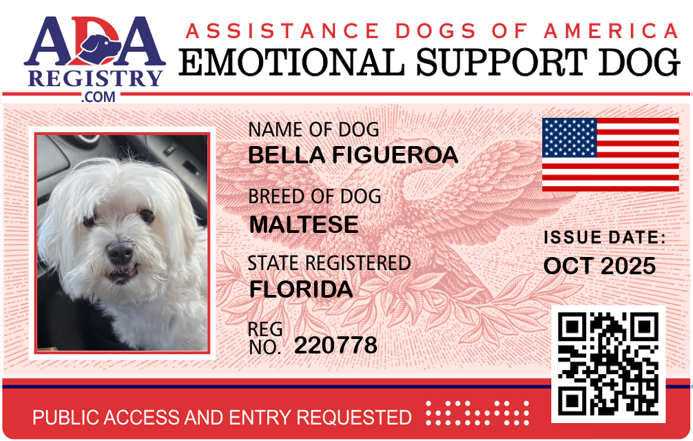 Emotional Support Dog Registration for Bella Figueroa