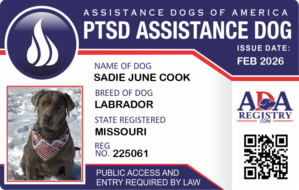 PTSD Assistance Dog Registration for Sadie June Cook