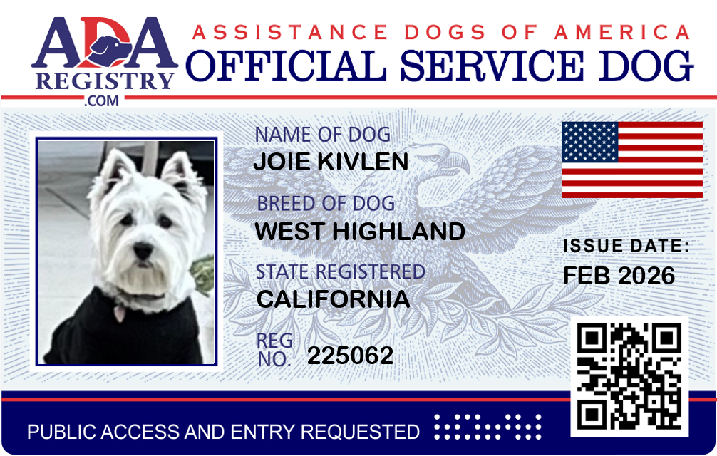 Service Dog Registration for Joie Kivlen