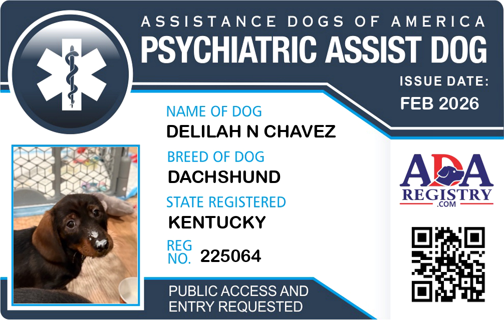 Psychiatric Service Dog Registration for Delilah N Chavez