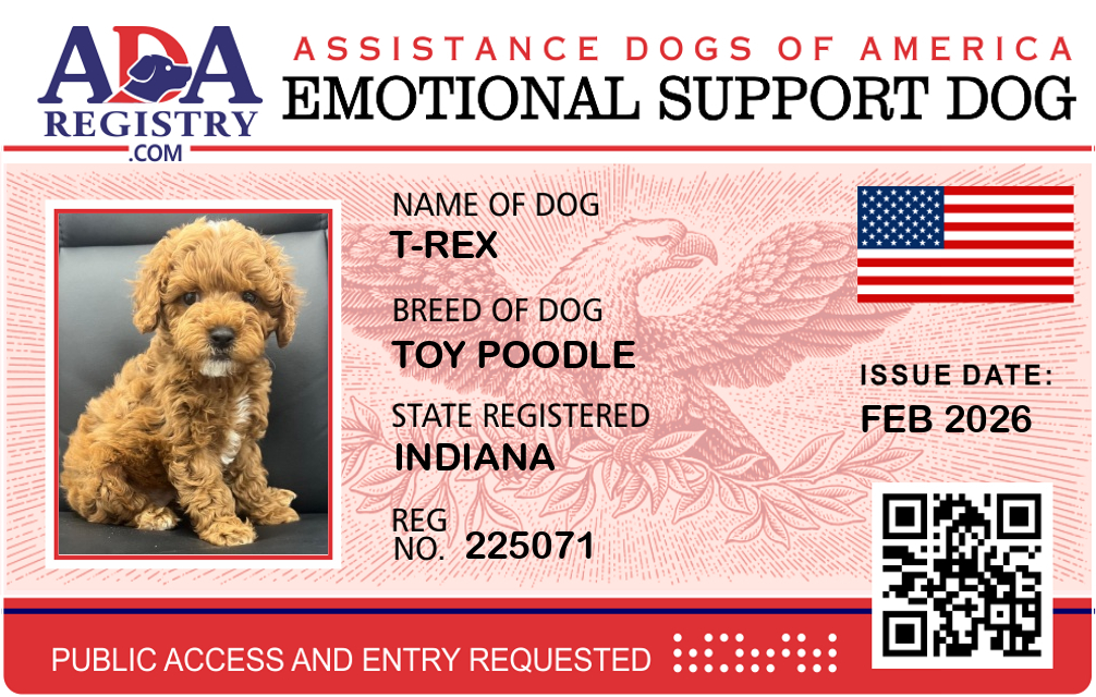 Emotional Support Dog Registration for T-Rex