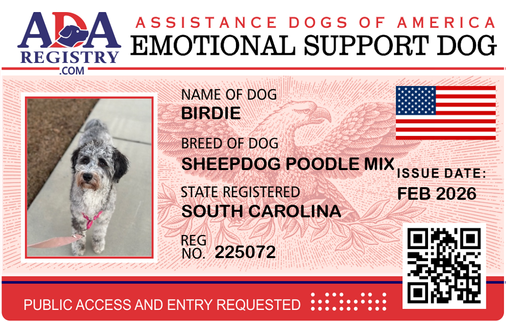 Emotional Support Dog Registration for Birdie