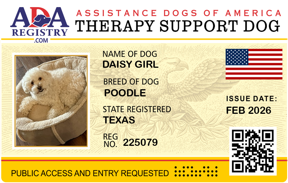 Therapy Dog Registration for Daisy Girl