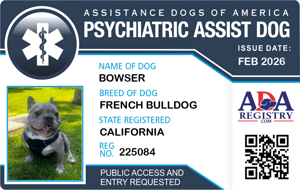Psychiatric Service Dog Registration for Bowser