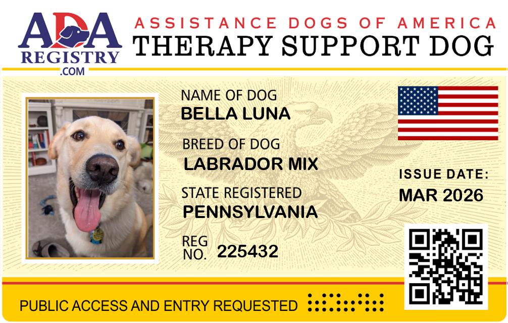 Therapy Dog Registration for Bella Luna