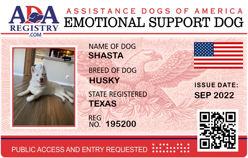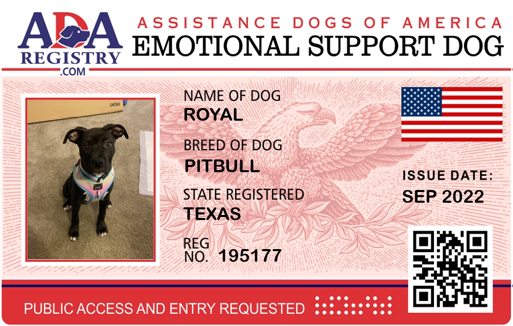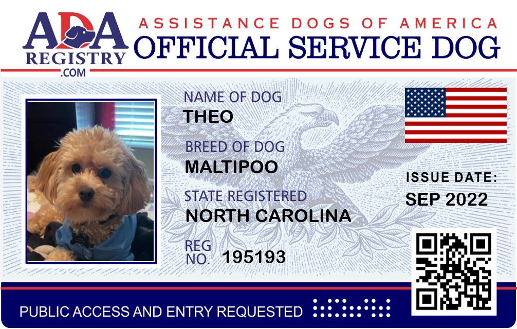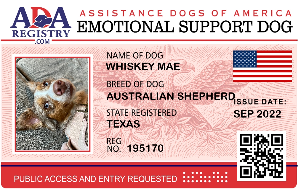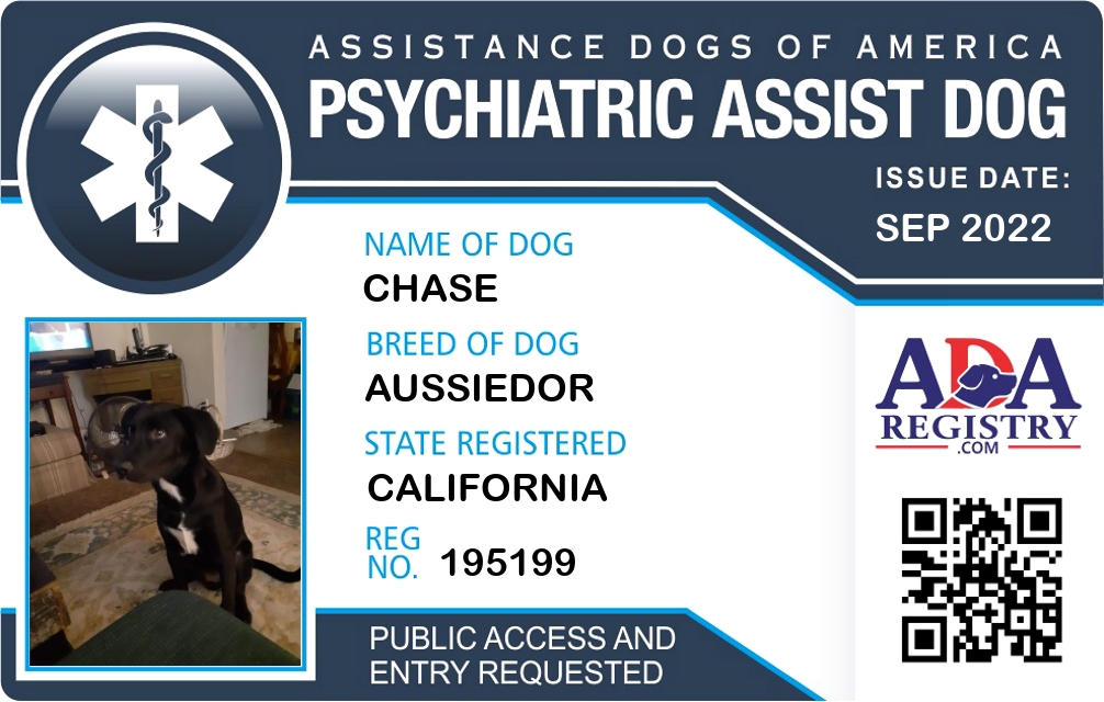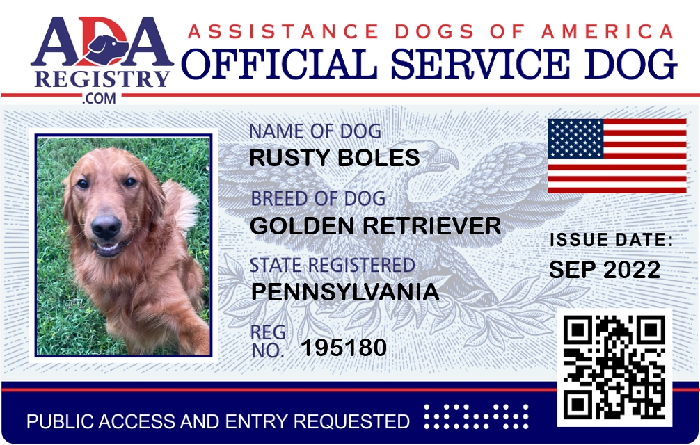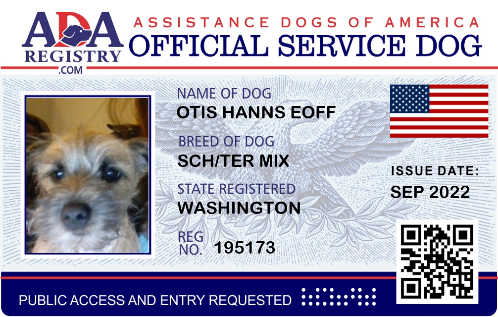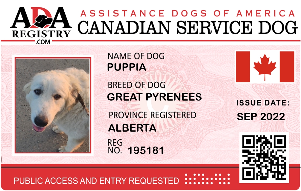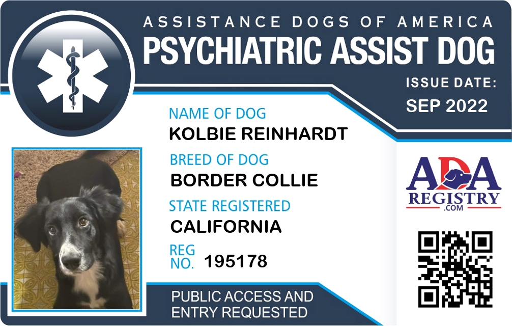 Psychiatric Service Dog Registration for Kolbie Reinhardt