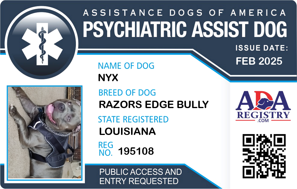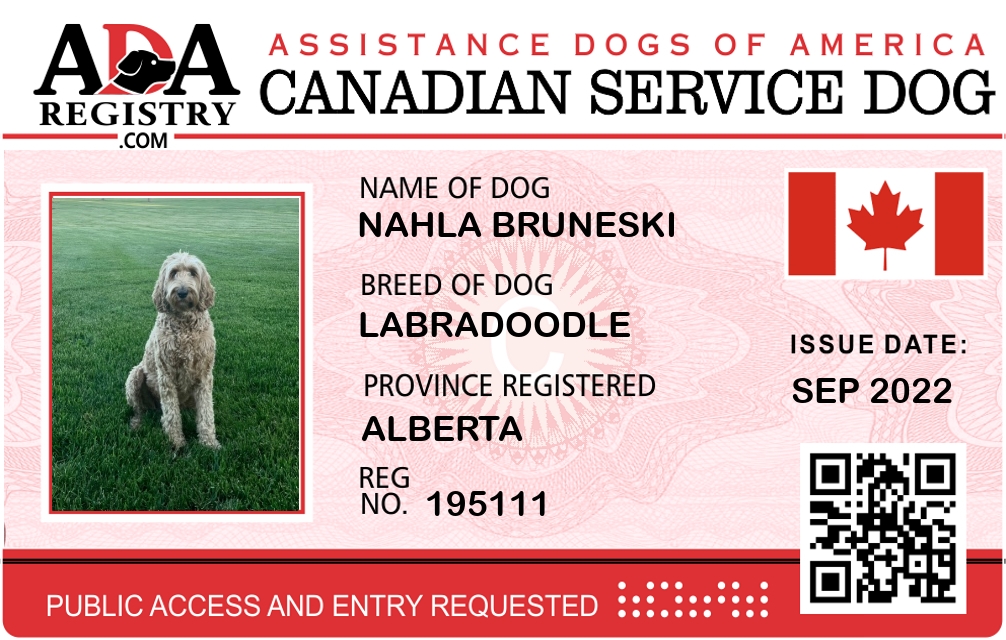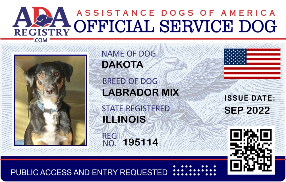 Service Dog In Training Registration for kayne Tisdale Bleeks