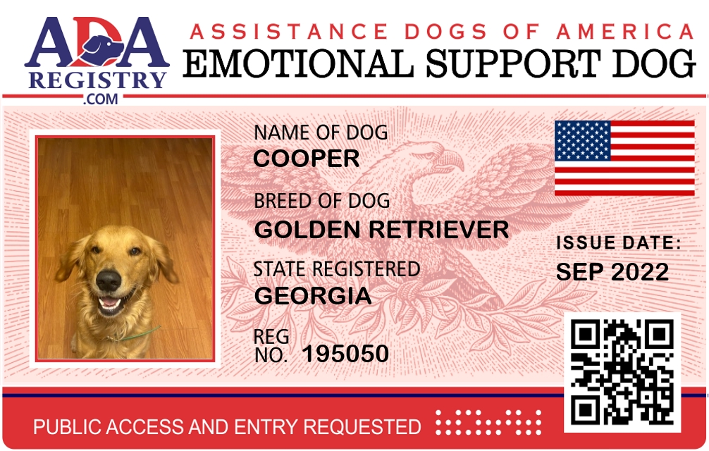 Emotional Support Dog Registration for Cooper