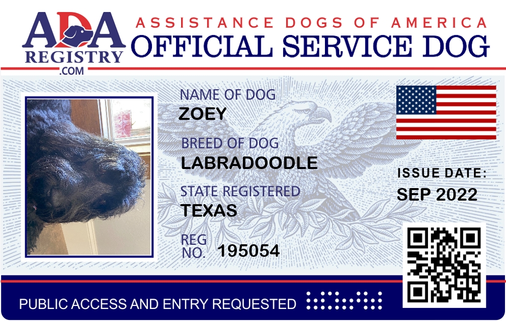 Service Dog Registration for Zoey