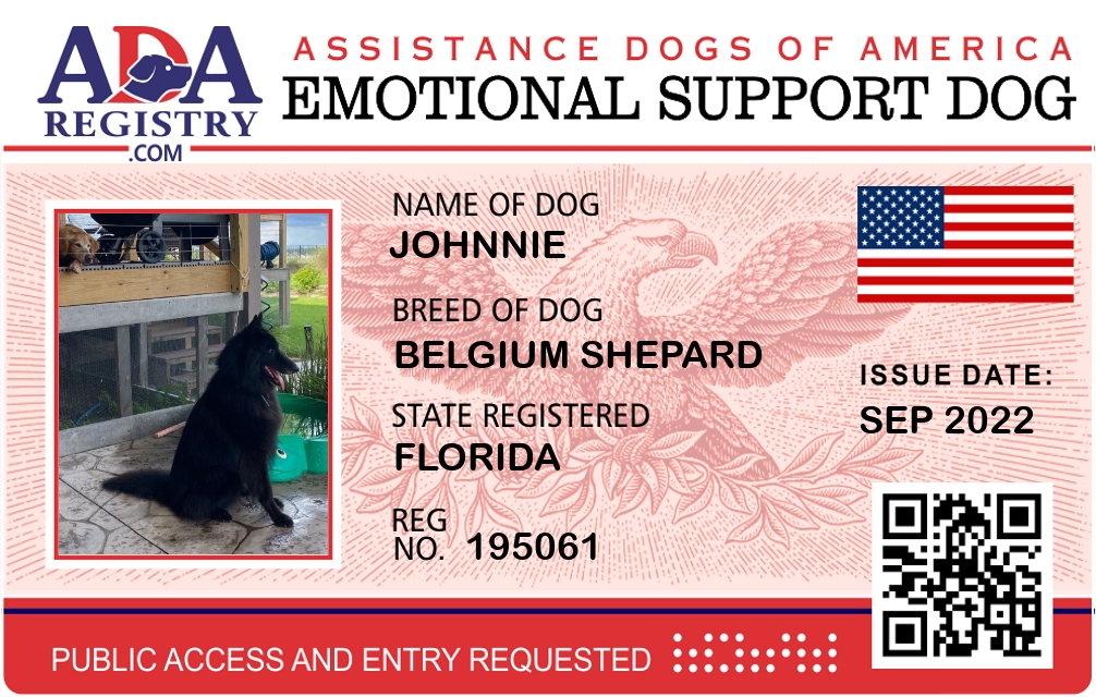 Emotional Support Dog Registration for Johnnie