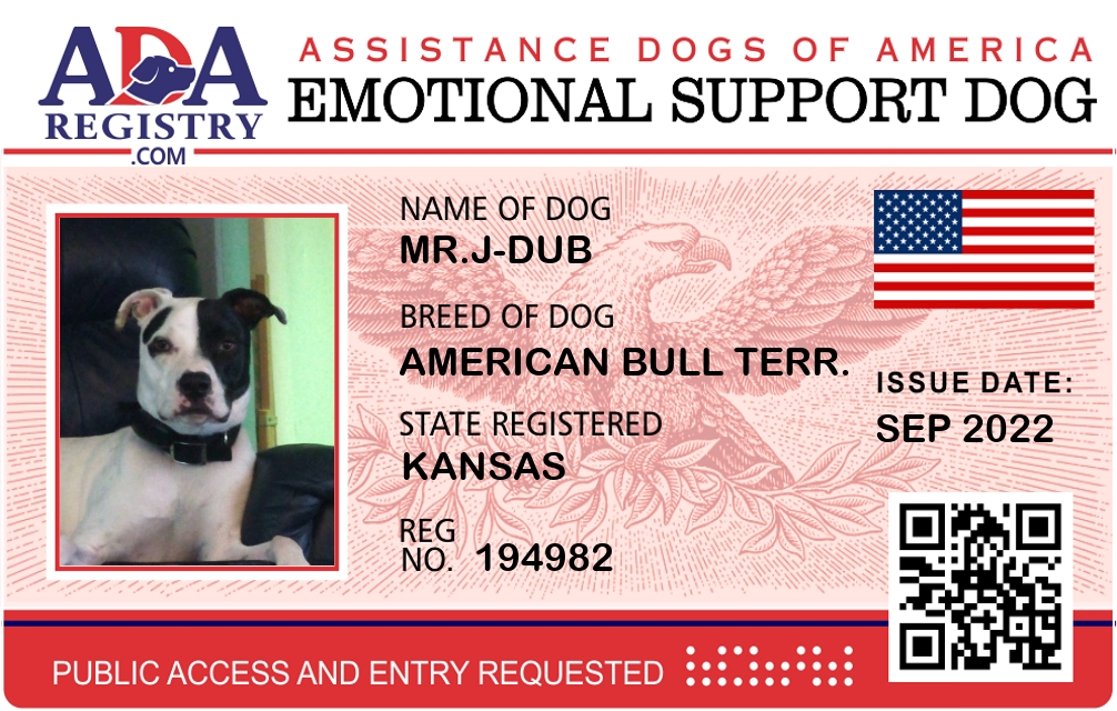 Emotional Support Dog Registration for Mr.J-Dub