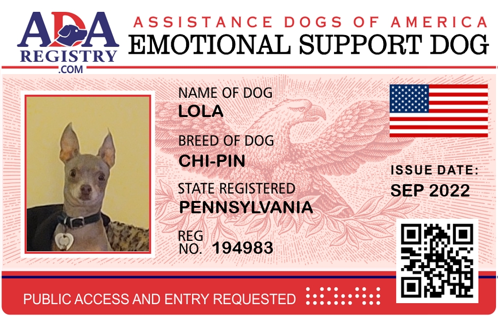 Emotional Support Dog Registration for lola