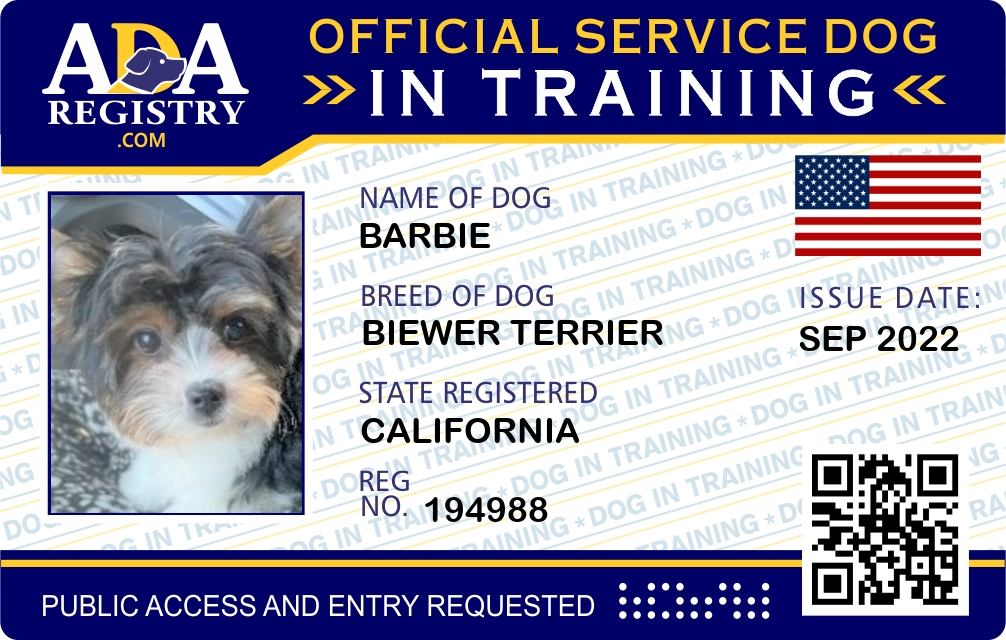 Service Dog In Training Registration for Barbie