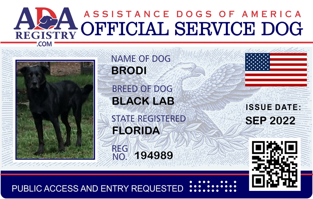 Service Dog Registration for Brodi