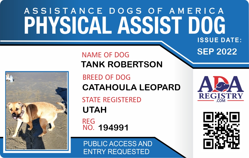Physical Assistance Dog Registration for Tank Robertson
