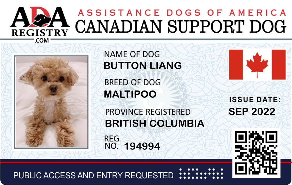 Emotional Support Dog Registration for Button Liang