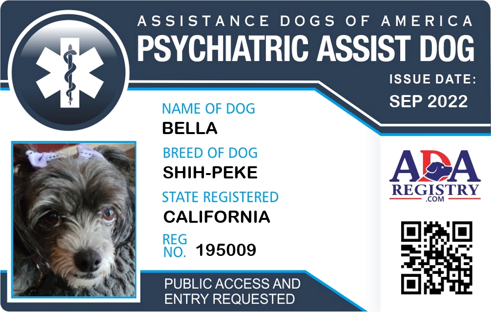 Psychiatric Service Dog Registration for Bella