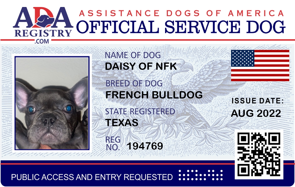 Service Dog Registration for Daisy of NFK