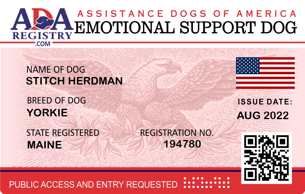 Emotional Support Dog Registration for Stitch Herdman