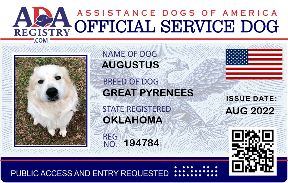 Service Dog Registration for Augustus