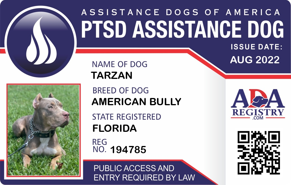 PTSD Assistance Dog Registration for TARZAN