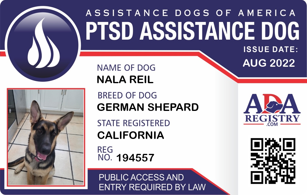 PTSD Assistance Dog Registration for Nala Reil