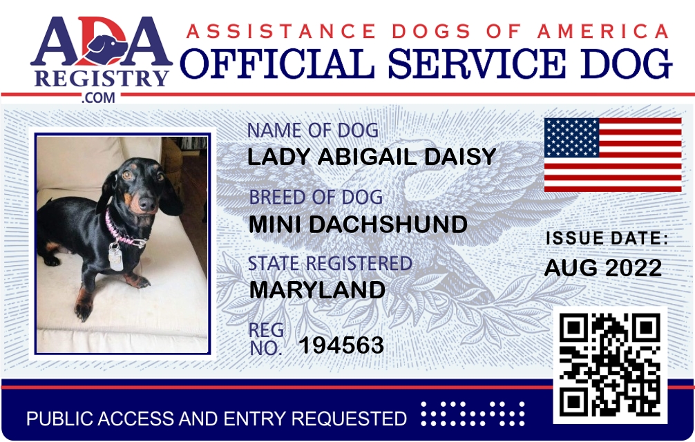 Service Dog Registration for Lady Abigail Daisy