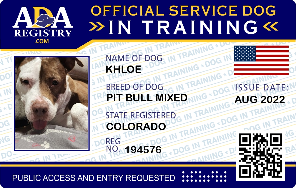 Service Dog In Training Registration for Khloe
