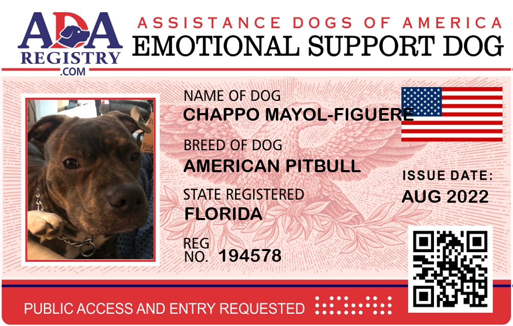 Emotional Support Dog Registration for Chappo Mayol-Figuere