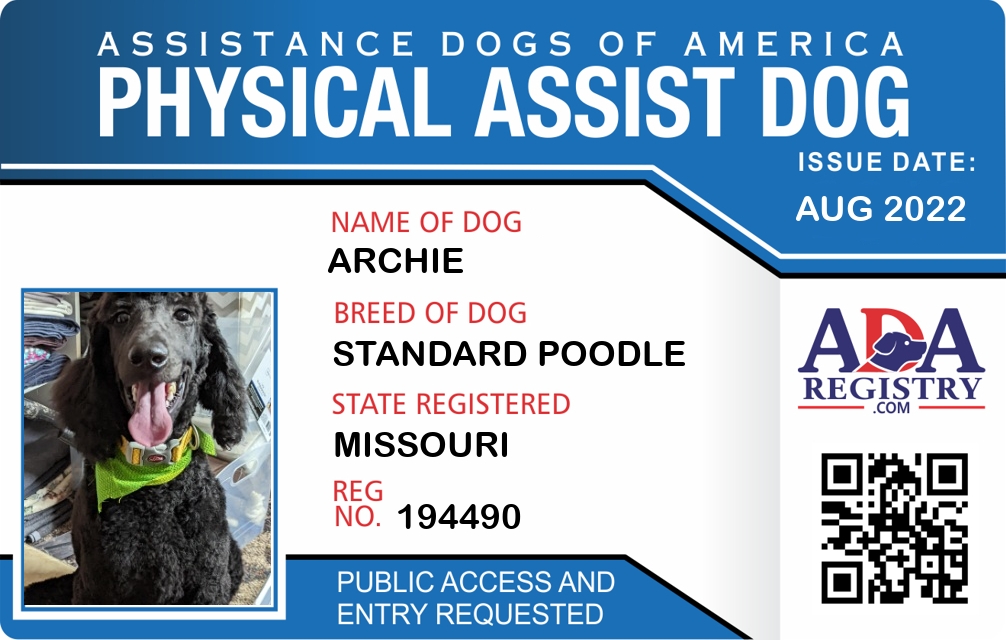 Physical Assistance Dog Registration for Archie