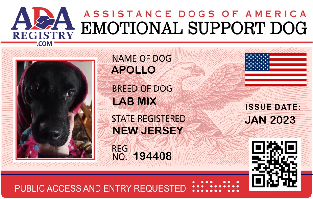 Emotional Support Dog Registration for Apollo